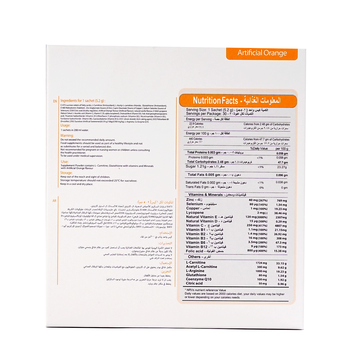 المكونات: معززات خصوبة , ال كرنتين ,أسيتيل ال كرنتين ,ال أرجينين,جلوتاثيون,كوكيوتن. الشكل الدوائي: بودرة