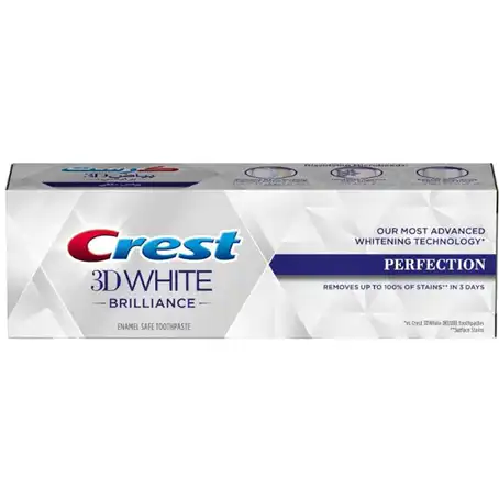 معجون تبييض الأسنان Crest 3D White Brilliance Perfection بتركيبة فريدة تزيل ما يصل إلى 100٪ من البقع السطحية في 3 أيام وتوفر تبييض ثلاثي الأبعاد. المينا آمنة