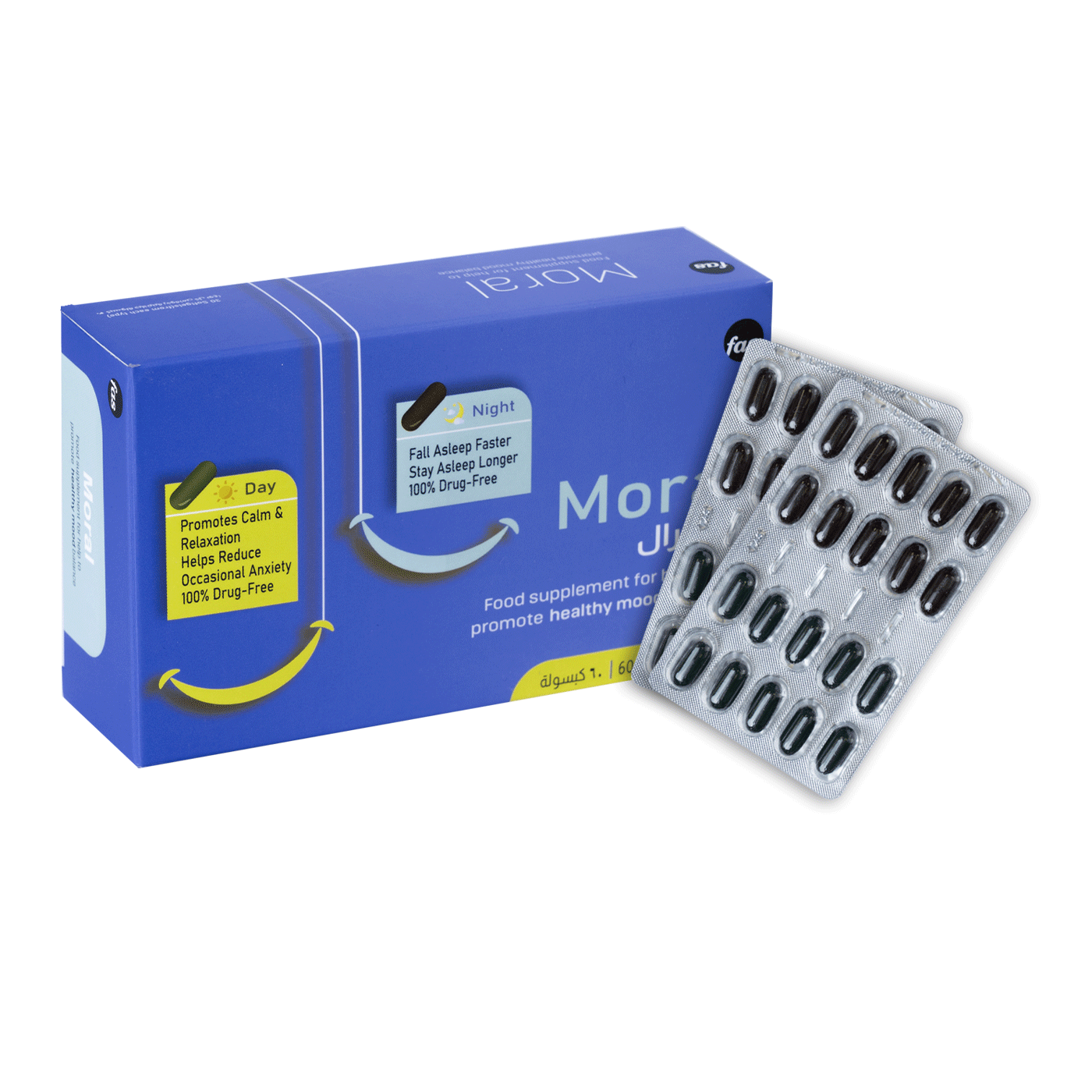 تركيبة متكاملة تحتوي على ثلاثين كبسولة صباحية تعمل عى تحسين الحالة المزاجية وتقليل التوتر